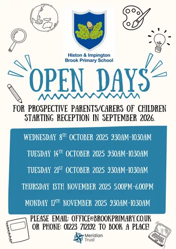 We are aware that many of you will already be thinking about places for your children in Reception for September 2026. In order to apply for a place at Histon and Impington Brook Primary School, parents/carers need to go onto the Cambridgeshire Education Admissions page to apply for a school place. Please click on the link below