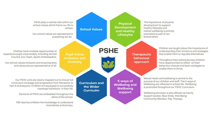 Personal Social Health Education (P.S.H.E.) is central to our curriculum and is reflected in every area of teaching and learning. All elements of school life centre around ensuring children are given ample opportunity to understand themselves, their communities and the wider world around them. We believe that children need safe spaces to discuss their own values and principles and be guided in the way to live a safe and happy life with the confidence to make reasoned decisions about their own choices. We recognise it is fundamental for children to understand about physical and mental wellbeing, exploring their emotions in a safe and non-judgemental environment. The values of PSHE underpin our curriculum and our Vision statement.